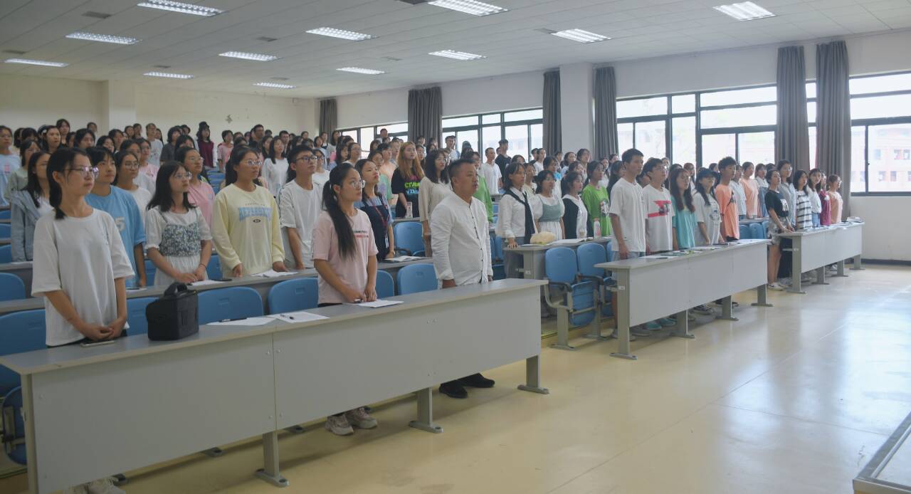 仪式开始,全体起立奏唱中华人民共和国国歌和中国共产主义青年团团歌。接着杨书记强调本次培训的重要性,指出身为新时代青年,团课以及青马工程培训不仅能提升同学们的综合素质,也能让同学们更多了解国家方针政策。同学们要认真做好笔记,积极参加课程学习,确保顺利通过考核。随后,优秀学生代表20级传播学倪明芩同学发言,感谢学院给同学们提供这样好的机会与平台,同学们一定会努力学习,用习近平新时代中国特色社会主义武装自己的头脑,脚踏实地去实践。