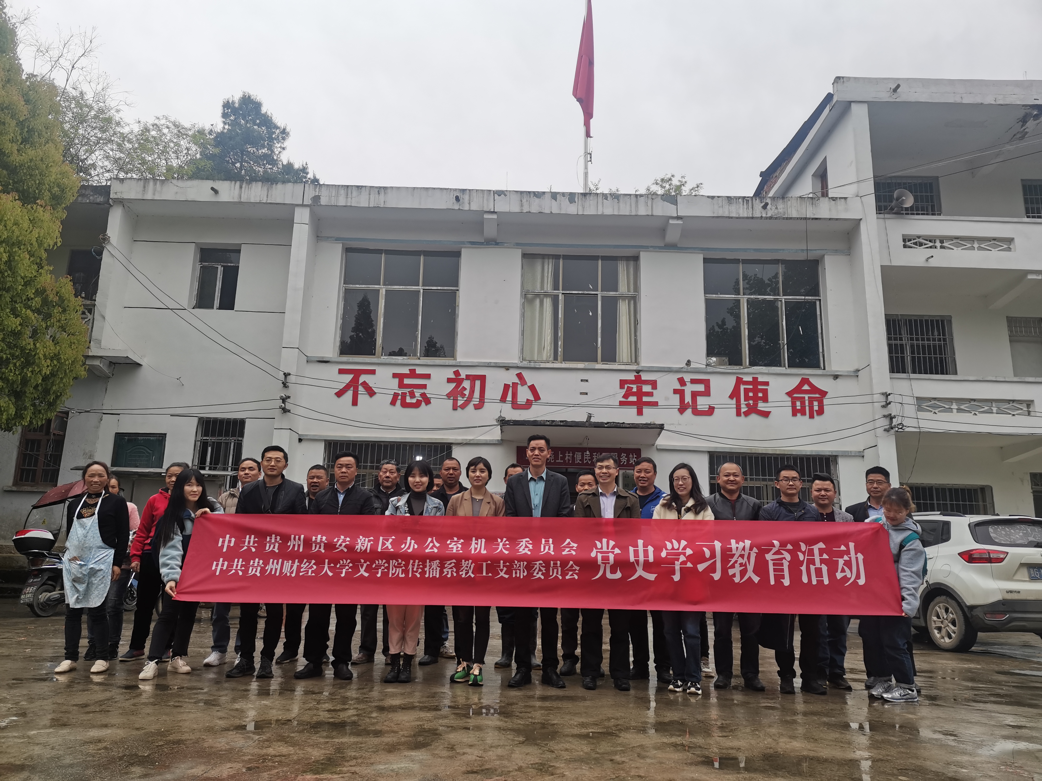 传播系教工党支部与贵安新区办公室机关党支部一行实地走访当地老党员同志,了解其生产生活情况,慰问参战退伍老兵,并为驻村干部、村两委干部、党员同志及退伍老兵等60余人宣讲贵州红色故事和中国革命史。