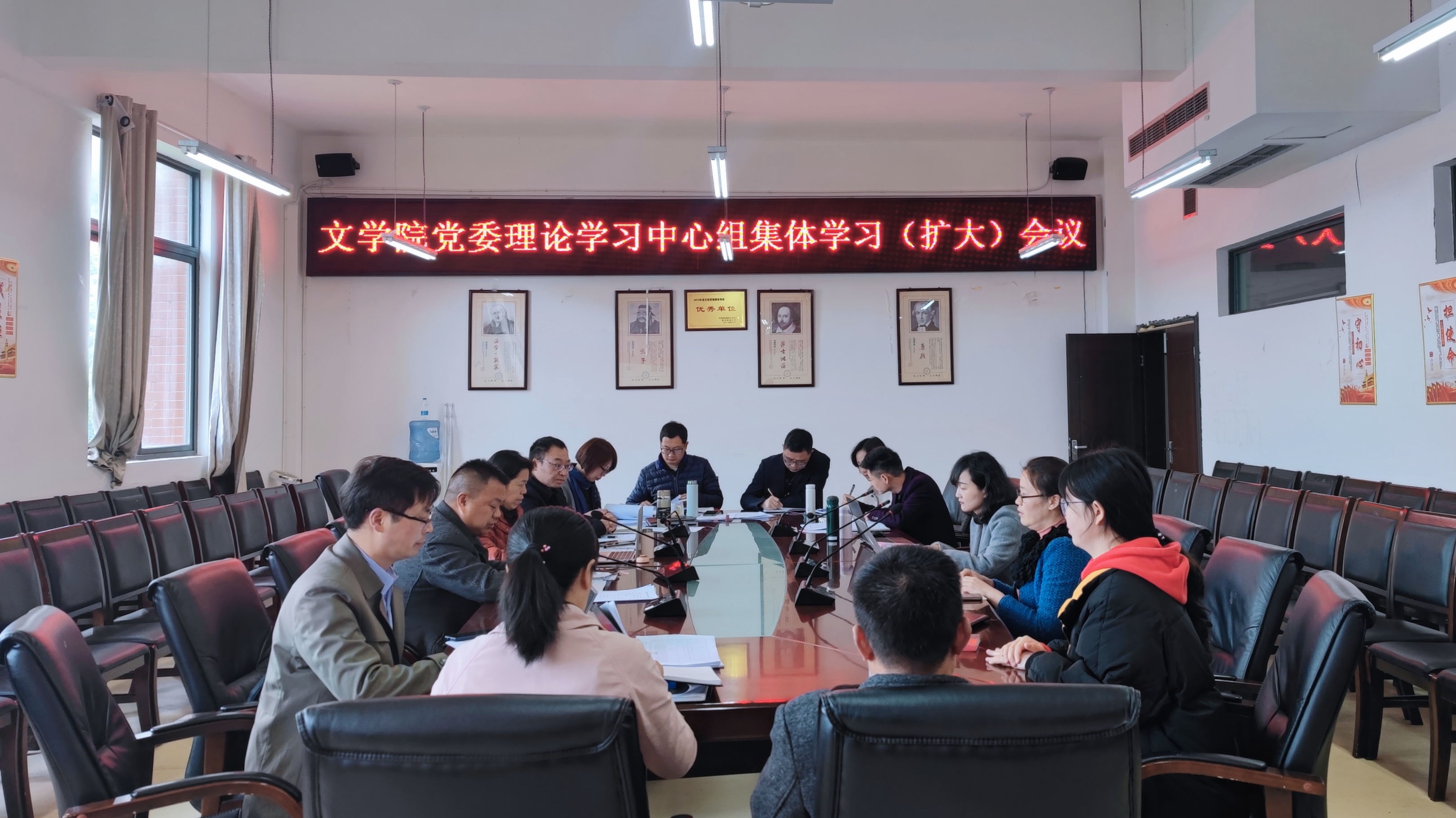 党委理论学习中心组2022年第五次集体学习(扩大)会议暨“纵深推进全面从严治党,筑牢守好意识形态阵地”专题学习研讨会在文德楼318举行。院党委书记杨经华主持会议。院党委副书记、纪委书记(兼)代泽华,院党委委员张武桥、武晓丽出席,党外人士顾雪松院长列席,各党支部书记、各科室(系)负责人参加。