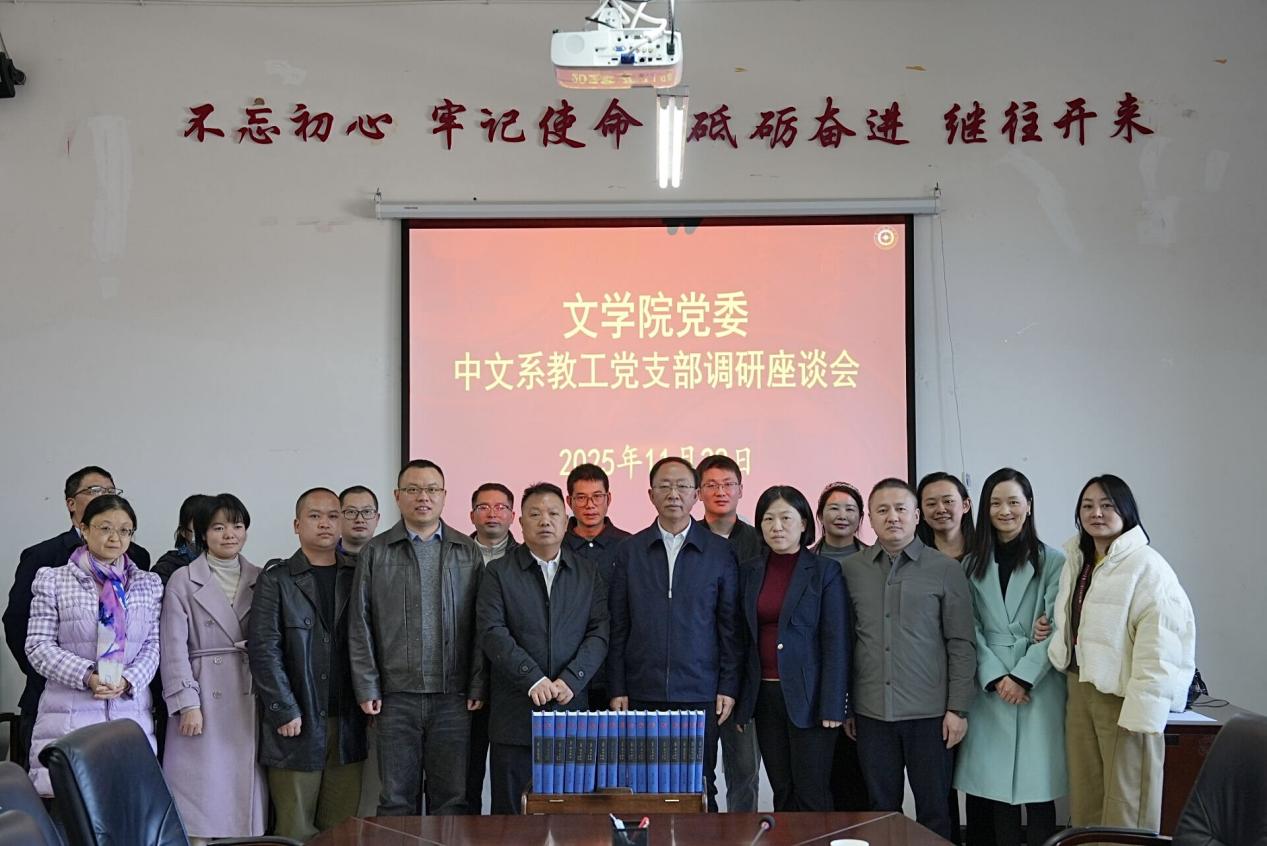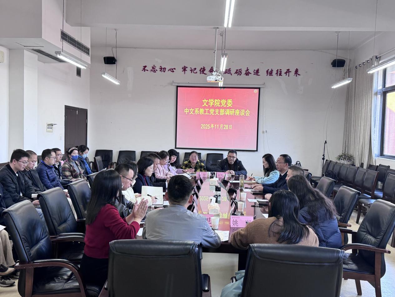 领导班子成员、科级干部及中文系教工党支部全体党员参加座谈,会议由博业体育