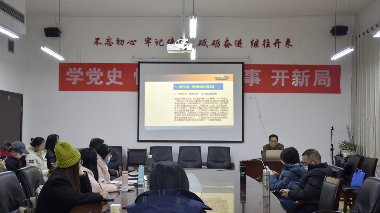 邓立老师以“《论语》中的成语典故赏析”为题,分析了成语在《论语》中的作用、定义与界定,选取大量《论语》例句,并且从文化、时代背景等深层次角度进行相关的成语赏析。